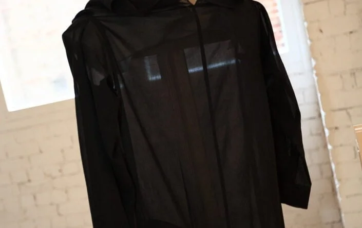 The cagoule – traditionally a cowl-like, waterproof coat popular in the 1970s – is the medium through which Project trace an exploration into shape and volume. Specifically, how a tailored form works with and against the human body and how one garment type has morphed and changed over the life of a label. The inherent strangeness of the formless form of the cagoule provides an ‘over shape’ to the body’s regular silhouette and distorts the notion of a typical body.
