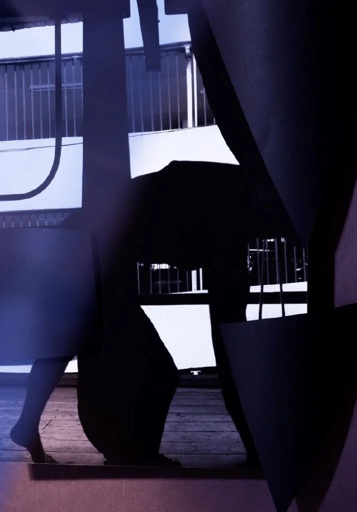 Wood, digital print on clear perspex, black jeans, 280 x 200 cm